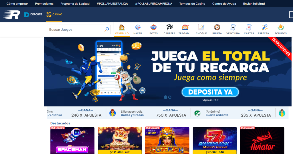 Aquí es donde Rushbet brilla con fuerza. La plataforma cuenta con un catálogo impresionante de +1,000 juegos de casino, posicionándolo como un líder en juegos de casino online.