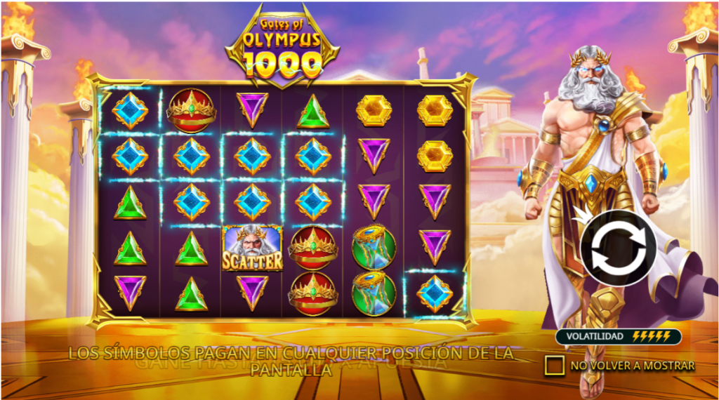 GATES OF OLYMPUS es un tragamonedas de temática griega/olímpica. Usualmente es de tipo “cluster pays” o similar con símbolos de dioses, multiplicadores que se acumulan y rondas de giros gratis